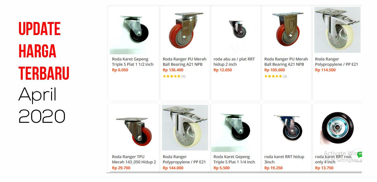 Kami menjual Roda dan Material Handling secara eceran dan partai. Kami menyediakan berbagai variasi produk yang bisa dicek di kategori produk berikut ini :